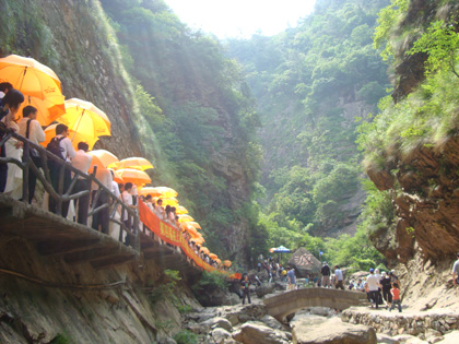 新人們在高入云端的龍須壁前合了影;同時(shí)還在云碧潭、思源廊、千仞崖等姚明拍婚紗照的景點(diǎn)留下了自己這一生中最最美麗的倩影。