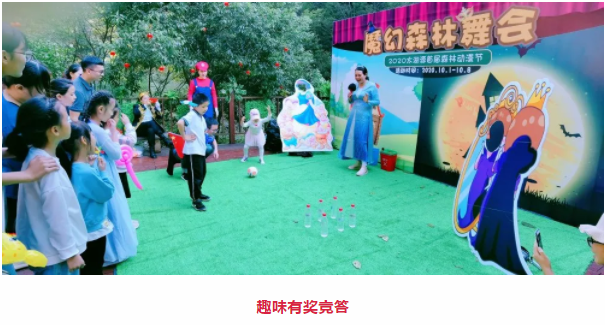 游客漫步于景區(qū),原始森林中,優(yōu)美的山水自然景觀之間,各式各樣的動漫卡通造型,十色清新的魔幻奇遇。有熊出沒,峽谷野人,遠古恐龍,跨腳大俠、小豬佩奇、灰太狼、神龜爺爺、美猴王、馬里奧等;還有小黃人、白雪公主與王子、小丑嘉年華、氧吧寶寶人物實景表演;還有森林音樂會、森林舞會、愛沙公主魔法會、中秋燈謎會等;還有垃圾分類投擲游戲、玩偶互動問答、魔法互動、鹿角套圈、飛行跳跳棋……這些人人可參與,人人都有獎。
