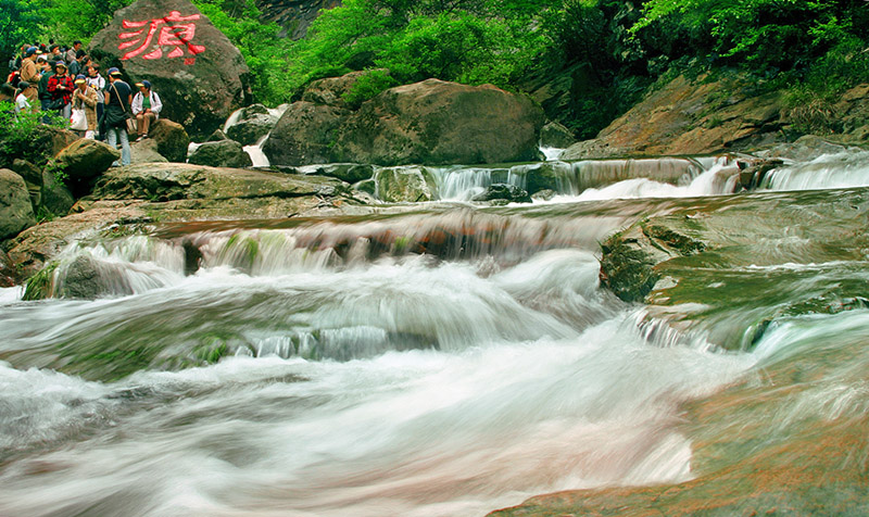 當(dāng)值盛夏,氣溫已是三十有多,走進(jìn)景區(qū)卻像來(lái)到另外一個(gè)世界,不寒不悶,清涼而爽身,人在風(fēng)景中,心在故事外;太湖源依附山谷而建,其中巨巖交錯(cuò),水繞石間,脈脈涌涌如練太極,大有勁斷意不斷的修為,又如白練,一線綿綿三萬(wàn)丈;山谷兩旁愛(ài)美的樹(shù)木擁擠著面朝澗水梳妝打扮,無(wú)論游客怎么觀望和拍照,悠然的煞有味道;山谷頭頂?shù)乃{(lán)天,白云一幀一幀地,在湛藍(lán)的背景里飄過(guò),野風(fēng)遍撫焦慮,樹(shù)草盡剔虛榮,山水如夢(mèng),云巒安適。