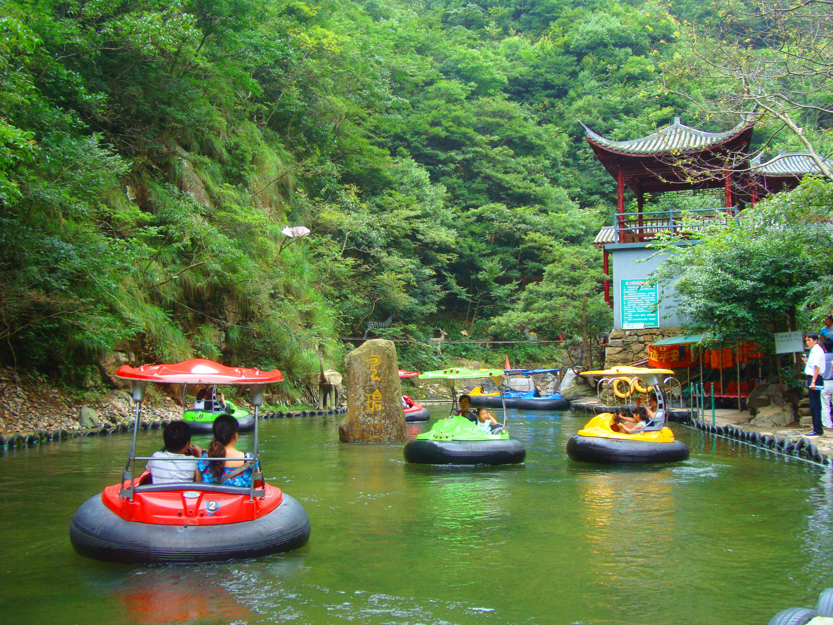 太湖源每到夏季深受江浙滬市民喜愛。這里的年平均氣溫只有17℃,當(dāng)城市已經(jīng)火燒火燎的時候,這里一片清涼~太湖源的水非常清澈,經(jīng)檢測達(dá)到一級飲用水標(biāo)準(zhǔn)!溪水中小魚小蝦忽隱忽現(xiàn),小朋友們可以嘗試下捕捉的樂趣喲~